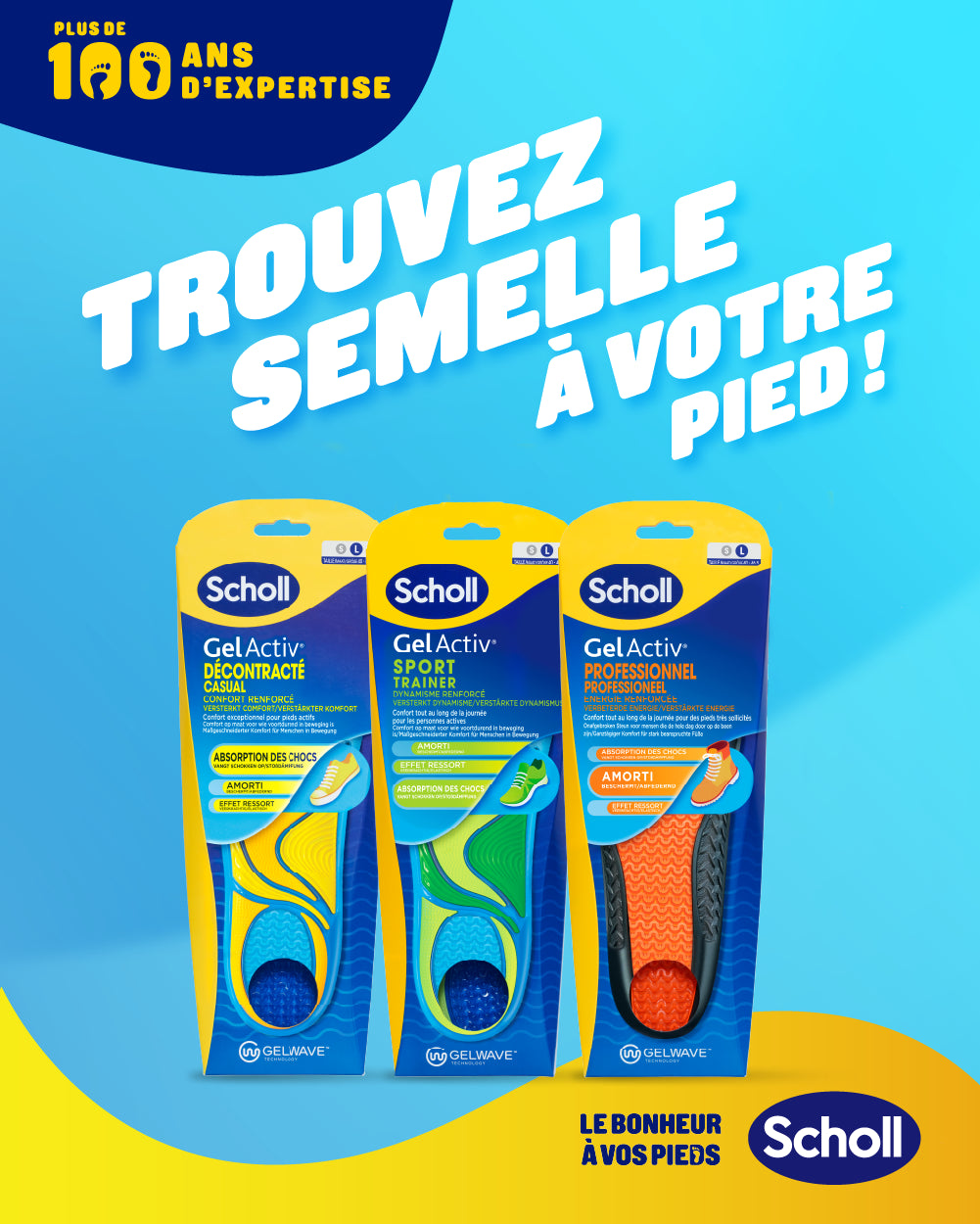 Chez Scholl, nous aimons partager nos conseils pour prendre soin de vos pieds et leur donner l’énergie et la force nécessaires pour vous emmener pas à pas, où que vous vouliez. Grâce à nos 100 années d’expertise, nous vous aidons à avoir des pieds en bonne santé tout au long de votre vie.
