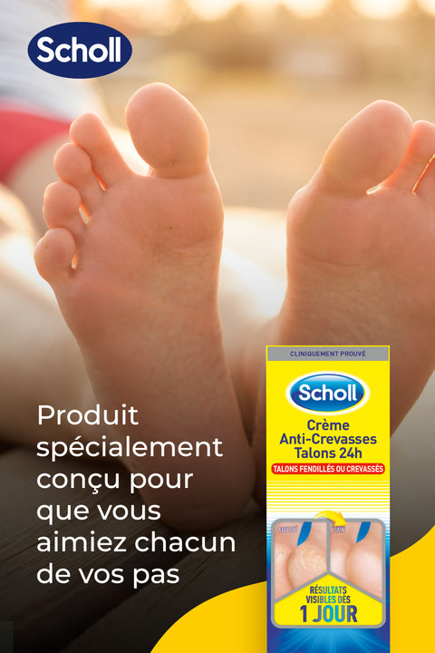 La Crème Anti-Crevasses Talons 24h de Scholl soulage la peau sèche, fendillée ou abîmée des talons. Elle contient de la kératine, qui favorise le processus naturel de renouvellement des peaux sèches. Prouvé cliniquement et testé dermatologiquement